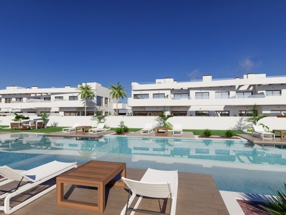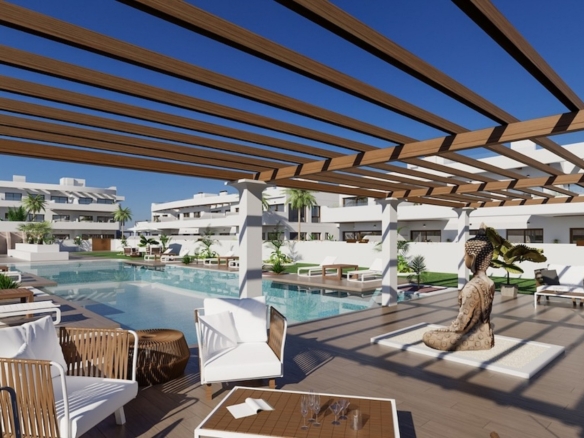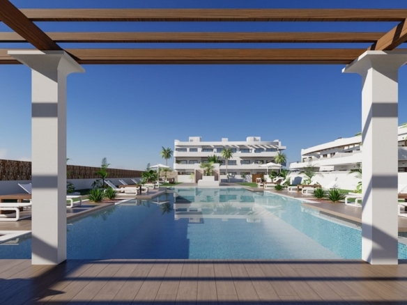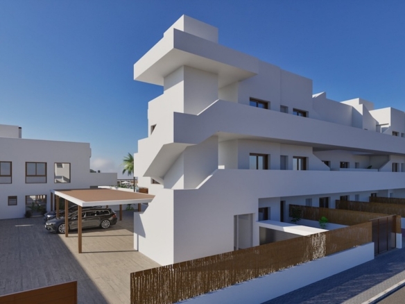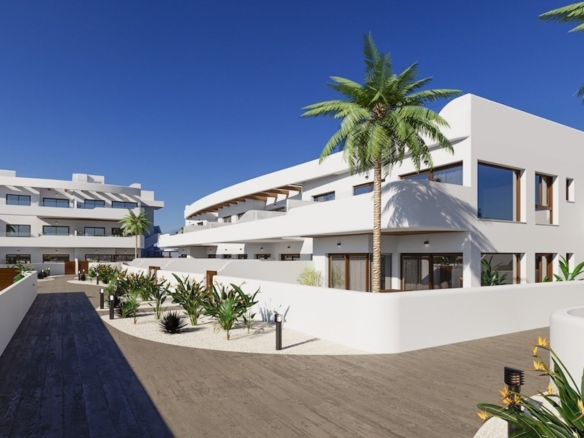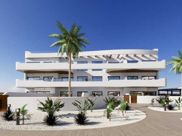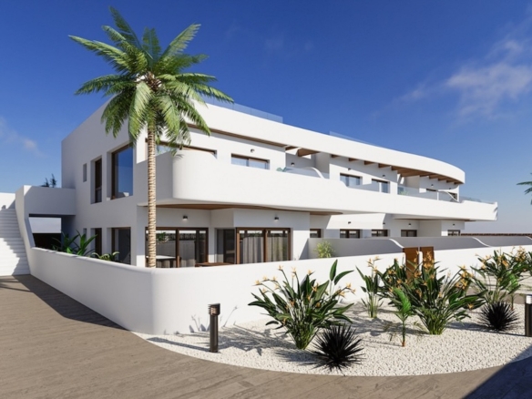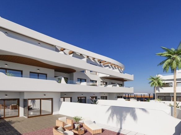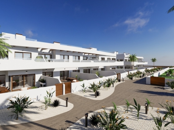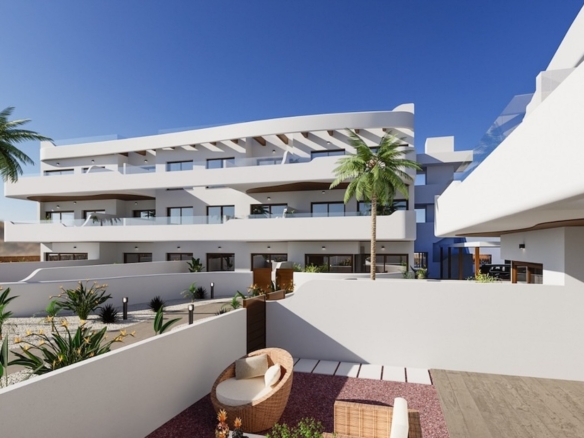 Discover these exclusive new-build apartments just 1.5 km from the beach in Los Alcazares. These apartments offer a choice of ground floor homes with garden, mezzanine floors with terrace, or penthouses with a roof terrace. A number of apartments offer beautiful views of the sea and the golf.