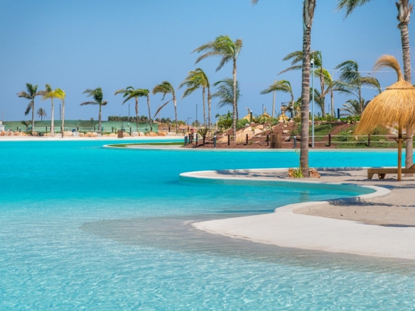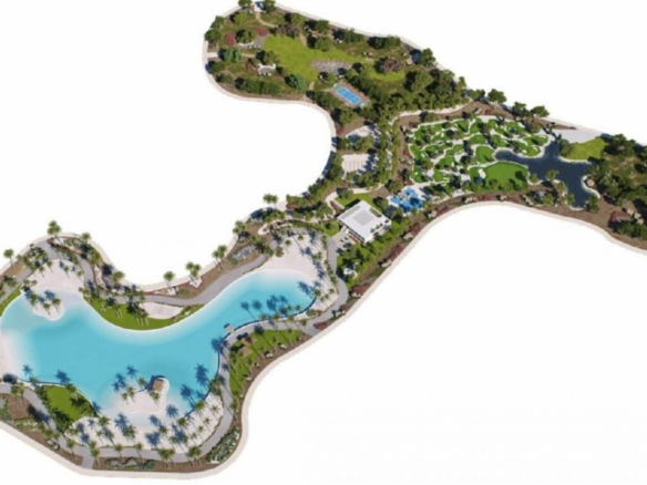The Santa Rosalía Lake & Life Resort, located on the Costa Cálida in Spain, is an exclusive and award-winning resort that combines luxury and nature. The highlight of the resort is the beautifully landscaped lagoon, an oasis of tranquility where guests can swim, kayak and relax in this idyllic location with white sandy beaches, palm trees and beach bars. In addition to the lake, the resort offers extensive green areas, perfect for walks and bike rides. Guests can enjoy a range of amenities and sports facilities, including a gym, spa, gourmet restaurants, golf courses, barbecue areas and various sports fields.