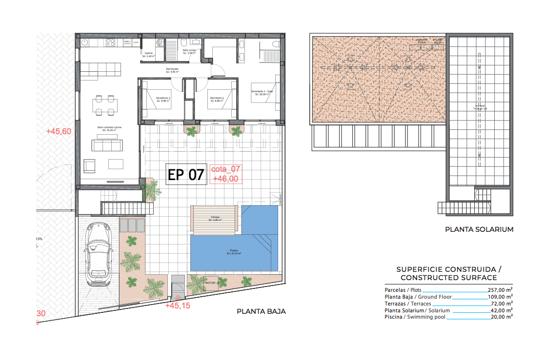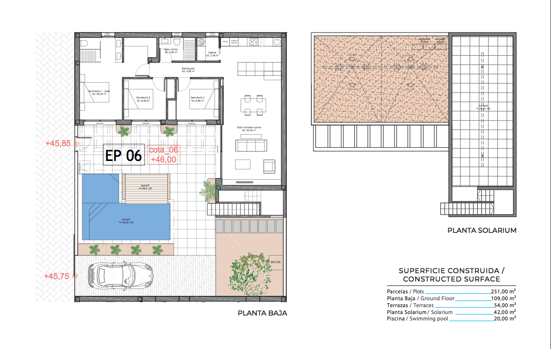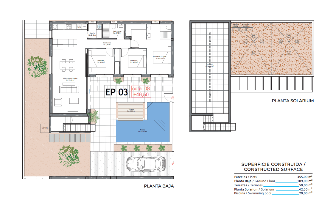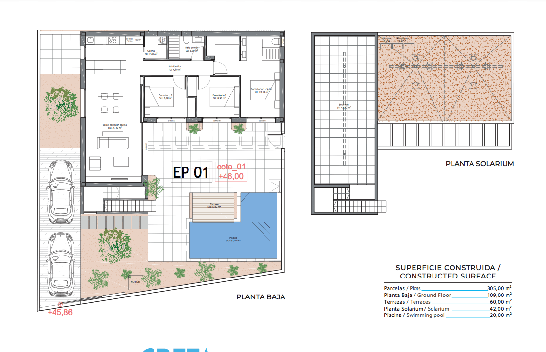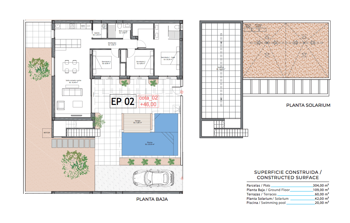 These properties are finished to a high standard and include white goods, inside and outside illumination as well as your own private pool. They are ideally suited to families or those who expect visitors frequently with one en-suite bathroom and another family bathroom. As you might expect in these modern homes, air conditioning comes pre-installed so you can be equally cool and warm just as you please.