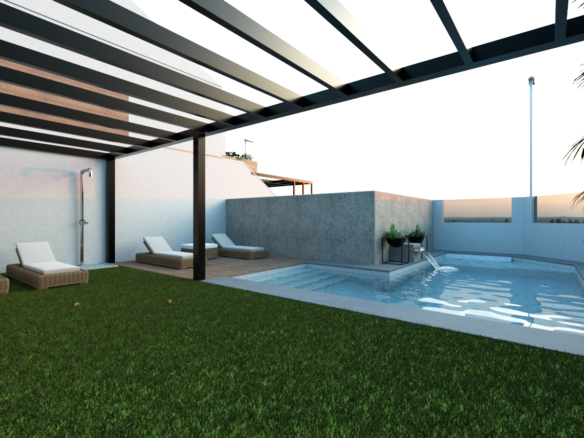 Step into the epitome of coastal living with Bungalows Marvic II, as we unveil plot 3 – a ground floor bungalow designed for modern comfort in Pilar de la Horadada on the enchanting Costa Blanca. This 2-bedroom, 2-bathroom residence is a testament to stylish living and Spanish charm. Situated on plot 3, this ground floor gem offers a thoughtful layout, featuring a 24.46 sqm terrace for al fresco enjoyment and a second terrace measuring 9.68 sqm for a more intimate retreat. Scheduled for availability in May 2024, this property is a seamless blend of convenience and sophistication. Immerse yourself in the joy of Spanish living on your expansive terrace, savor the cool interiors with air conditioning, and relish the ease of dedicated parking. Take a dip in the communal swimming pool or create your own oasis in the private garden, enjoying the best of the Costa Blanca lifestyle. Highlighted by a secure door entry system and the inclusion of essential white goods, this ground floor bungalow at Bungalows Marvic II is an invitation to experience contemporary living at its finest. As you consider this residence, explore the charms of Pilar de la Horadada. Nestled on the Costa Blanca, this town seamlessly combines tradition with modern living. Wander through historic streets, discover authentic Spanish cuisine in local cafes, and unwind on pristine beaches with crystal-clear waters. Pilar de la Horadada beckons you to embrace a lifestyle that marries tranquility with convenience. Whether you’re drawn to the local markets, historical sites, or golden beaches, this coastal town promises an authentic Spanish experience. Secure your place at Bungalows Marvic II, plot 3, and let the allure of Pilar de la Horadada become an integral part of your daily life, where the Costa Blanca’s beauty is your backdrop.